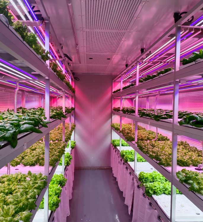 The fully intelligent environment plant factory is a mass production factory that uses intelligent, all-artificial environment precision control technology and hydroponic planting technology to intelligently control environmental parameters such as temperature, humidity, light, carbon dioxide, water, fertilizer and nutrition, breaking through the influence of the desert climate in the UAE and achieving uninterrupted production of high-quality and healthy vegetables throughout the year.